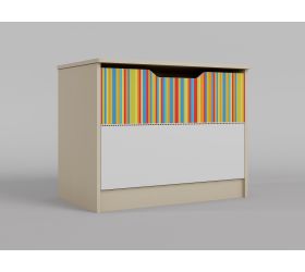Вставки с разноцветной радугой и цветные дверные ручки расставляют яркие акценты на белой мебели в этой коллекции. Благодаря такому лаконичному сочетанию не создается ощущения ряби в глазах, но при этом интерьер комнаты становится интересней и веселее.