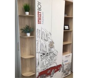 - Шкаф двустворчатый ШК-09 Сенди дуб сонома / белый, фотопечать мальчик. 1 шт.