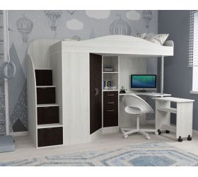 Кровать-чердак Кадет-1 с универсальной лестницей Дуб молочный/Лазурь
