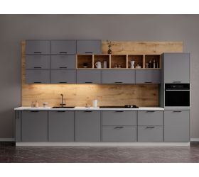 - Линейная кухня: в этом случае мебель и техника располагаются вдоль одной стены. Это идеальный вариант для узких помещений.