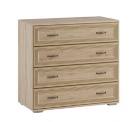 В широком комоде с четырьмя ящиками хватит места для хранения одежды и постельного белья.