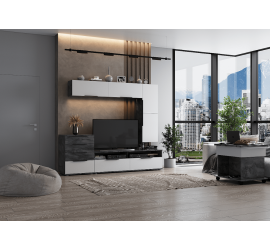 Тумба ТВ 2000 2 ящика Моника айрон рок / белый лофт сочетает в себе красоту и практичность, что делает ее идеальным вариантом мебели для украшения вашей современной комнаты.